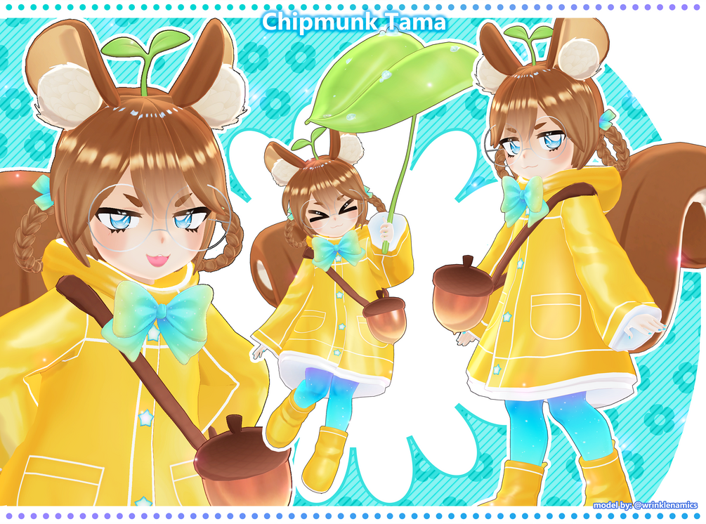 Introducing Chipmunk Tama! Playful and devious, but don't underestimate them because of their size! They like collecting exotic plants and mushrooms. Their little acorn purse comes in handy for storing their findings!